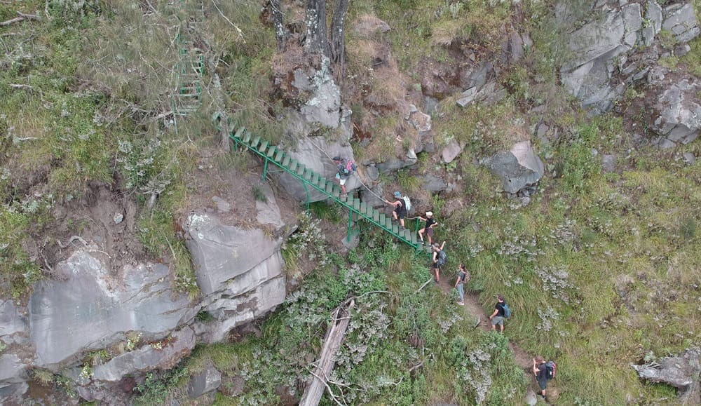 This route avoids the initial strenuous climb required on summit-focused routes, but the trail to Torean remains technically challenging, requiring careful footing in some slippery sections.